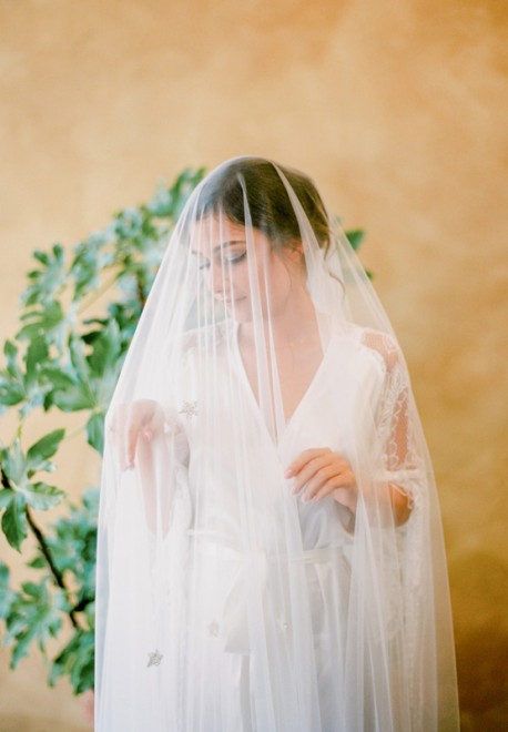 For the image of the bride were ordered by individual design: constellation earrings, veil embroidered with stars, diadem