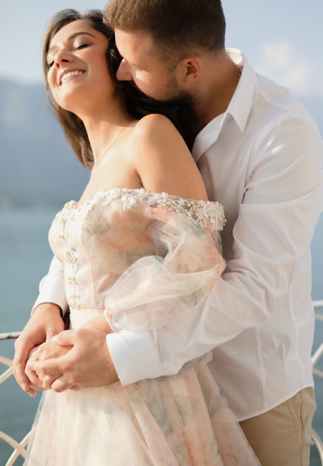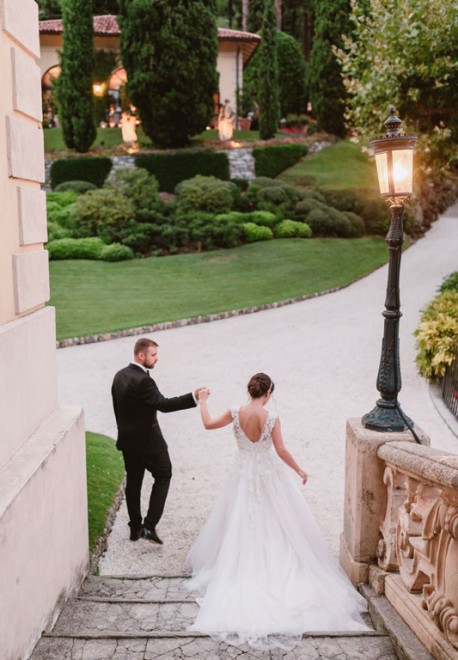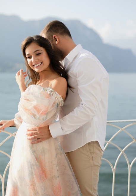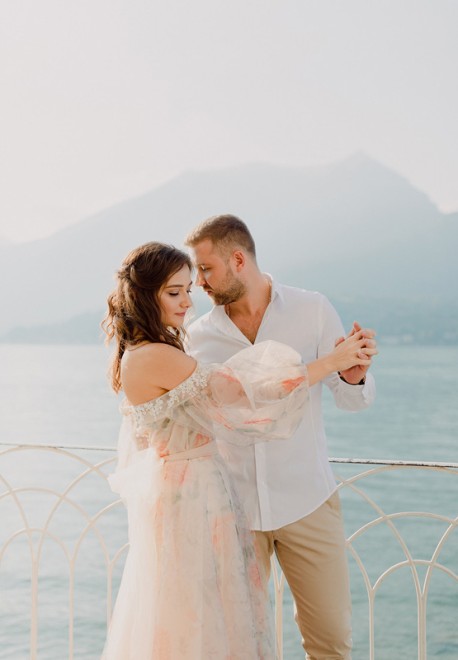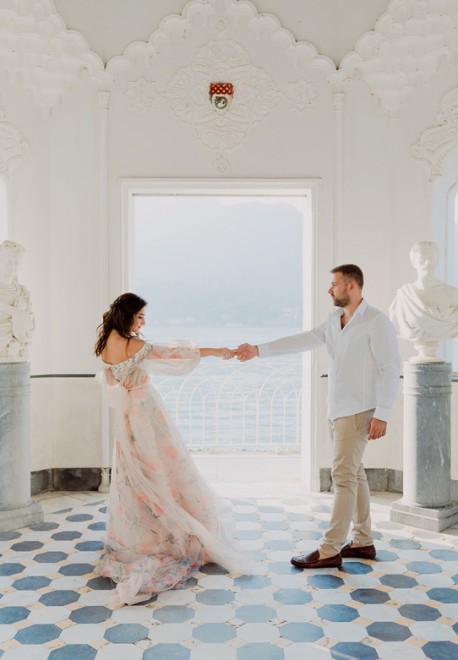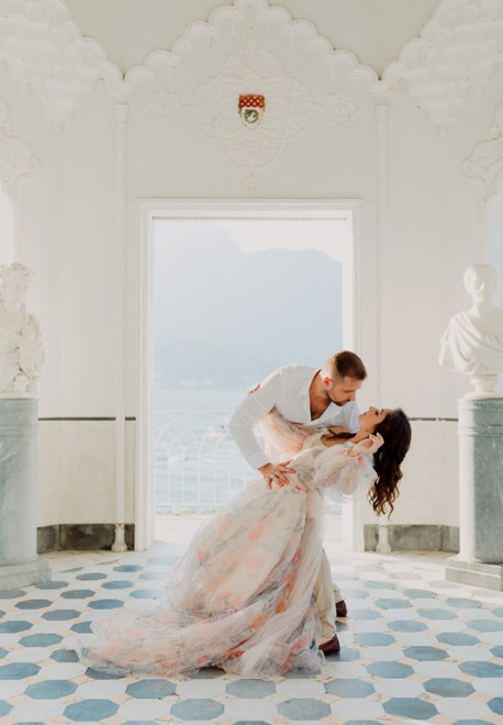 The love story took place at two different locations – in the Alpine mountains and at Villa Melzi on Lake Como.