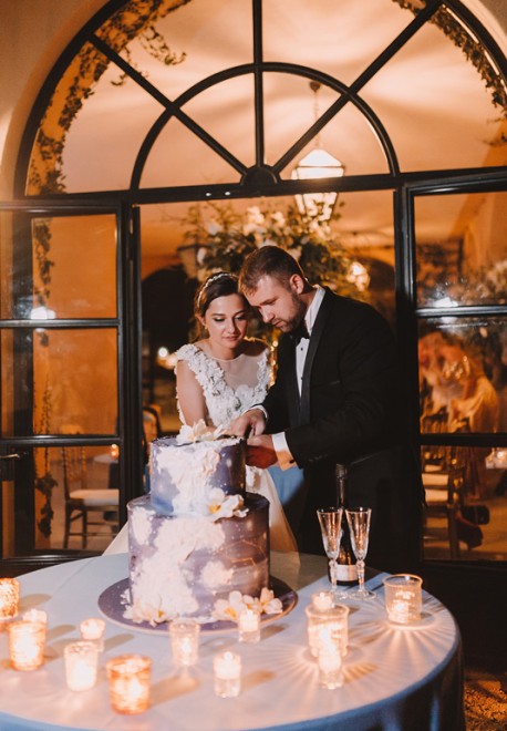 In favor of this concept was also the evening time of the wedding and the couple’s love for candles and ice garlands. The beautiful star of the World from the constellation Kita was chosen as a symbol of the holiday on the recommendations of an astrologer. Noble blue and gold became the main colors of the wedding.