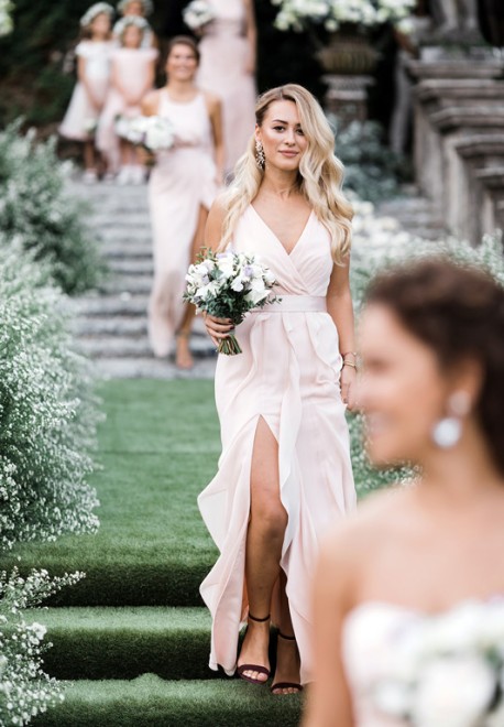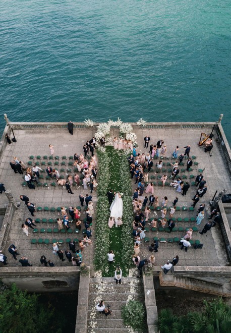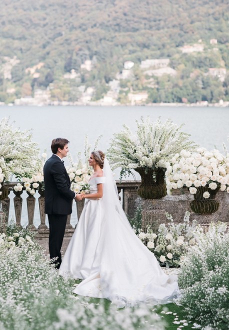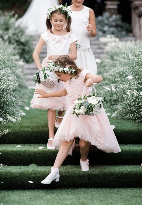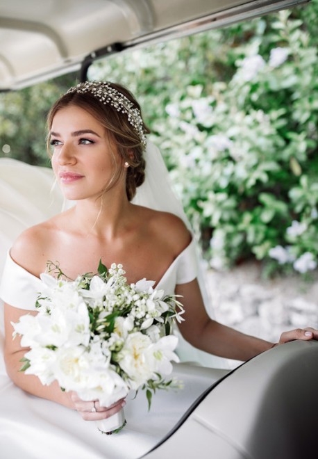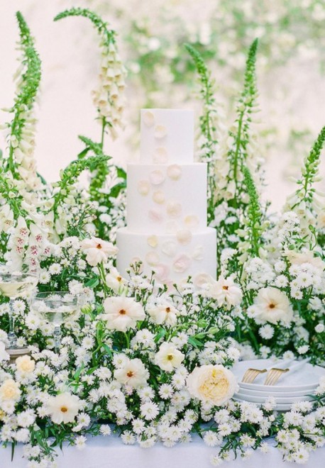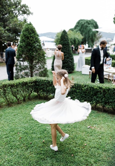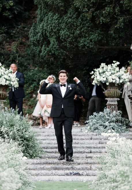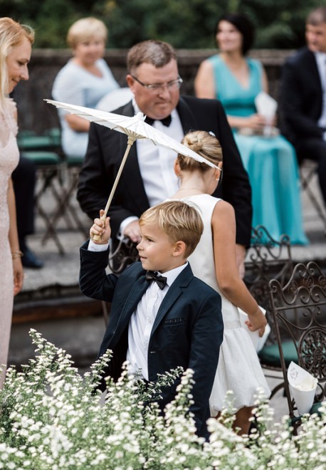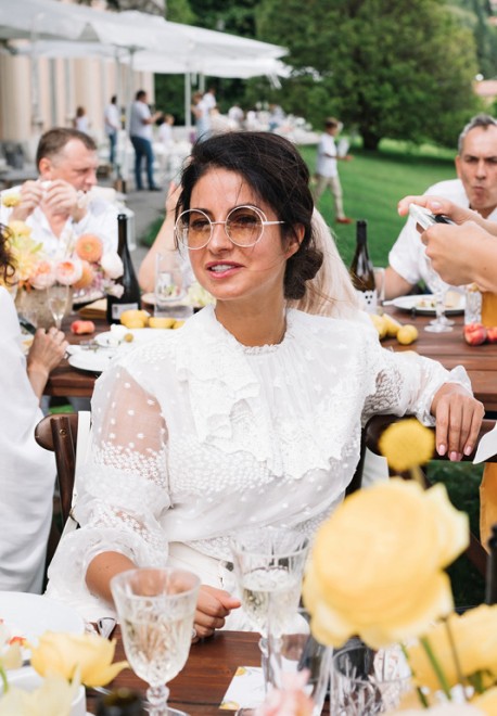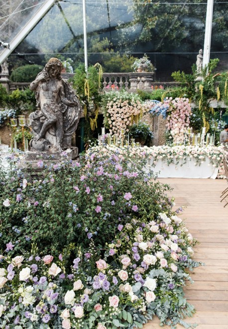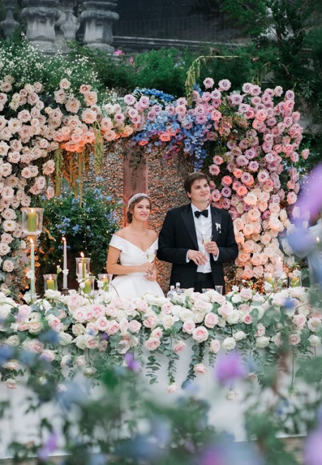 A “wild garden” seen served as a backdrop for the Ceremony. White and emerald palette with a large number of field flowers. Green grass was an aisle. For a couple of hours, cold terrace made of stone, turned into a blooming garden.