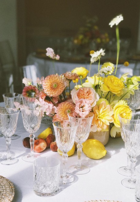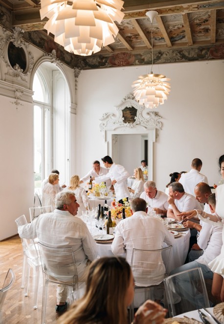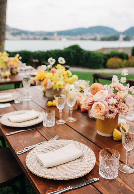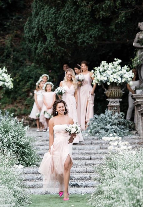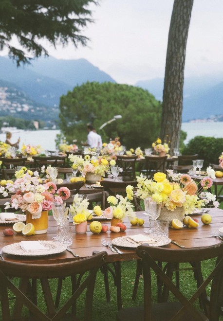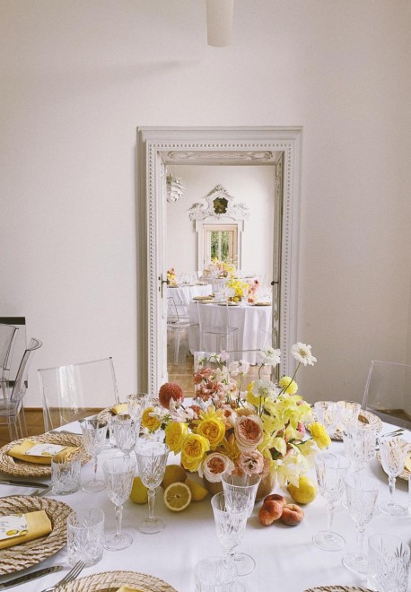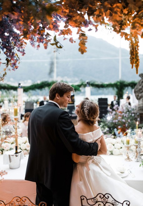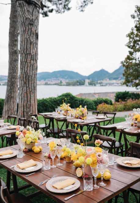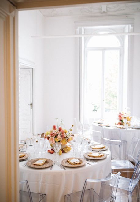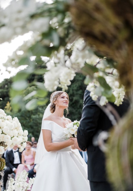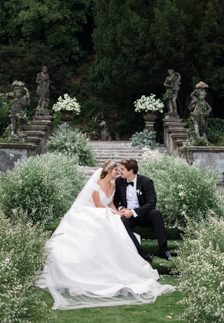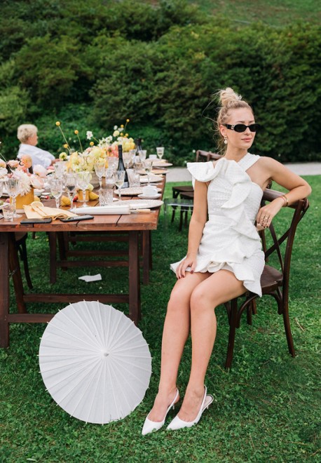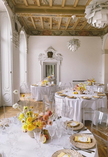 A “wild garden” seen served as a backdrop for the Ceremony. White and emerald palette with a large number of field flowers. Green grass was an aisle. For a couple of hours, cold terrace made of stone, turned into a blooming garden.