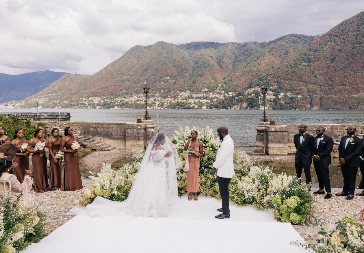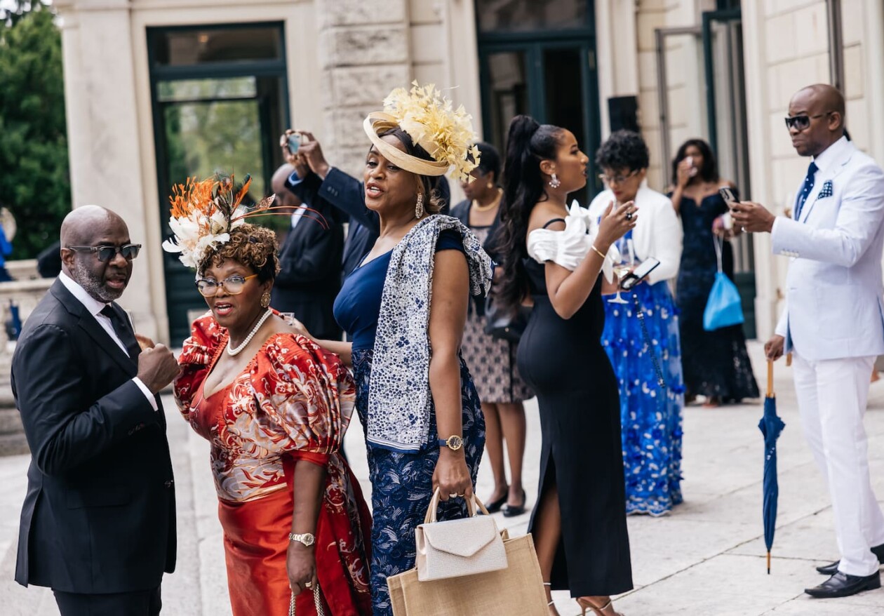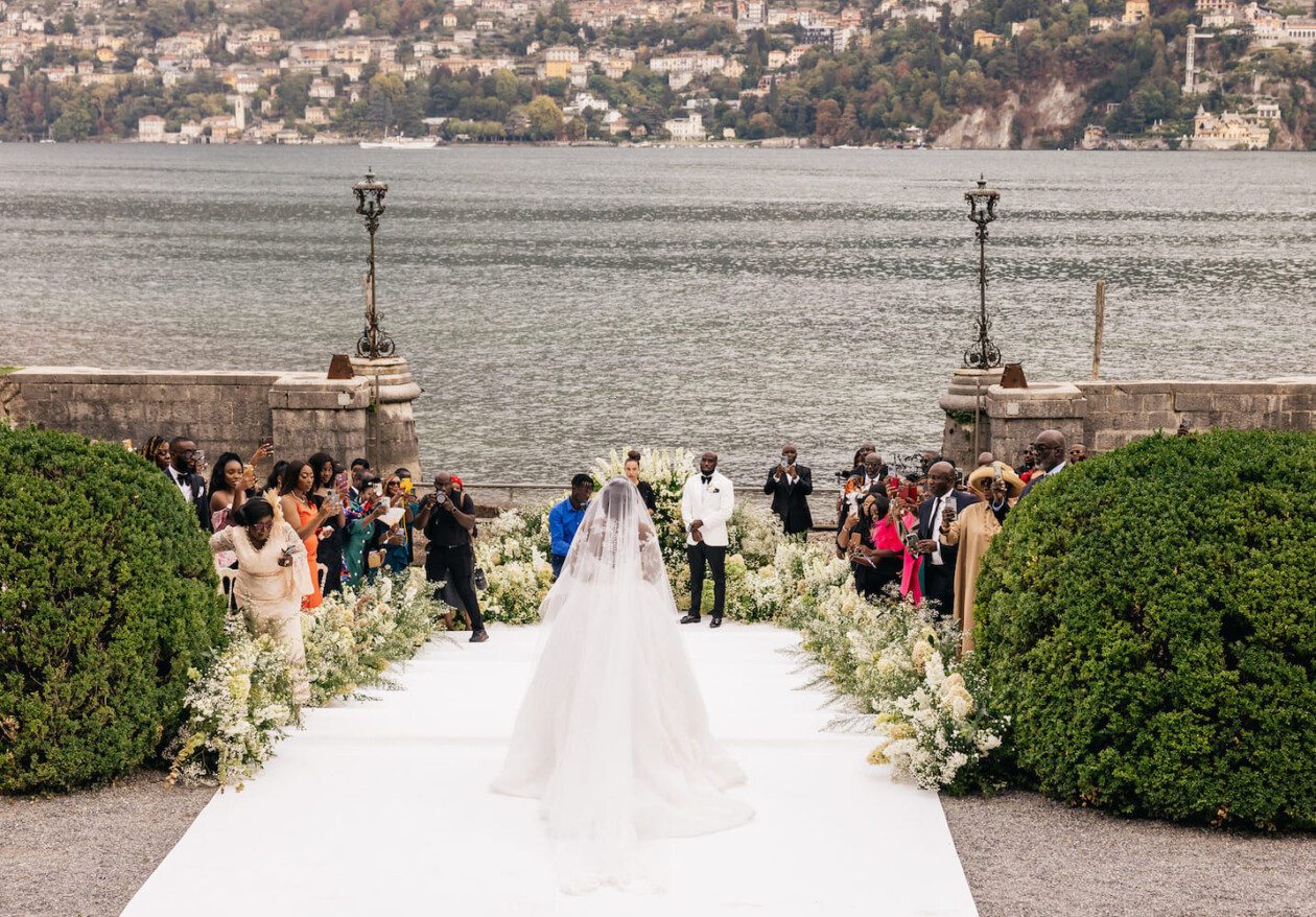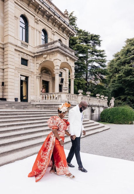 The ceremony was an unusual mix between traditional European, Nigerian and religious Christian. The bride and groom went to the altar with their mothers. The ceremony was attended by the family priest.