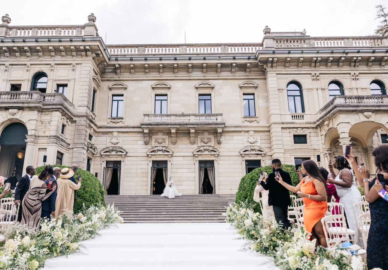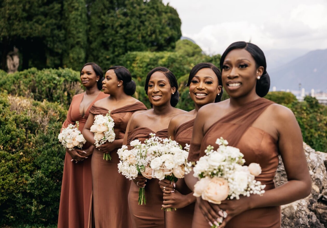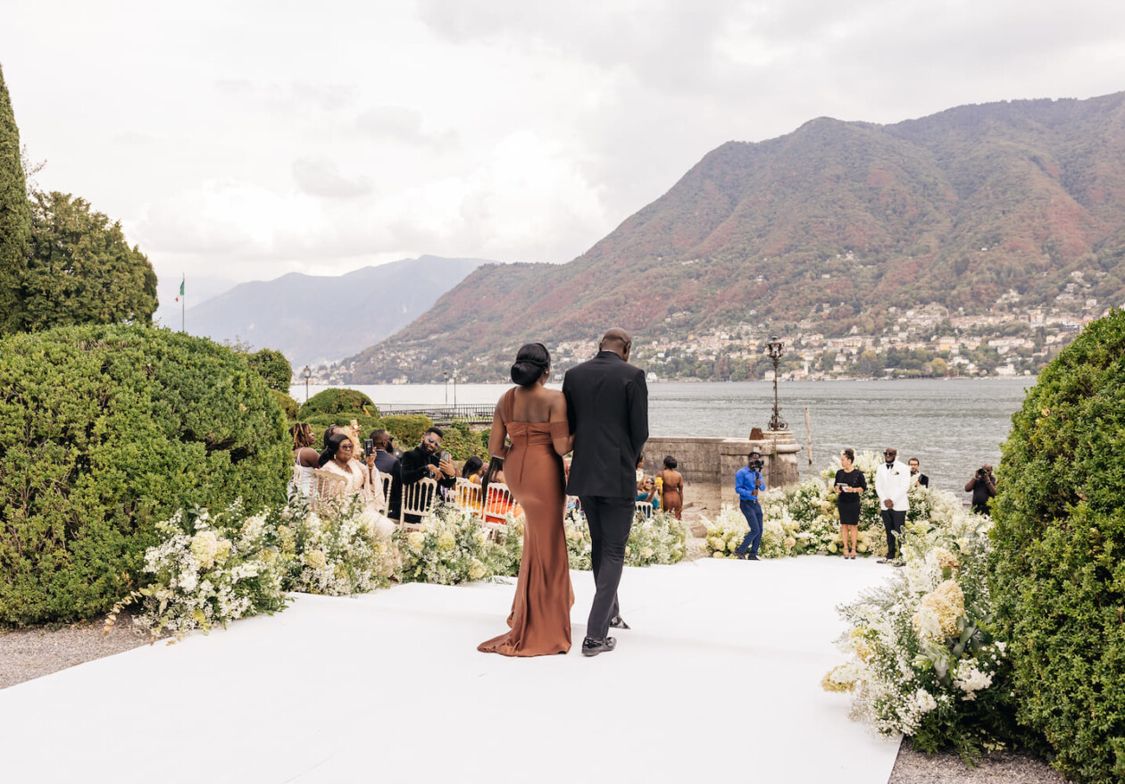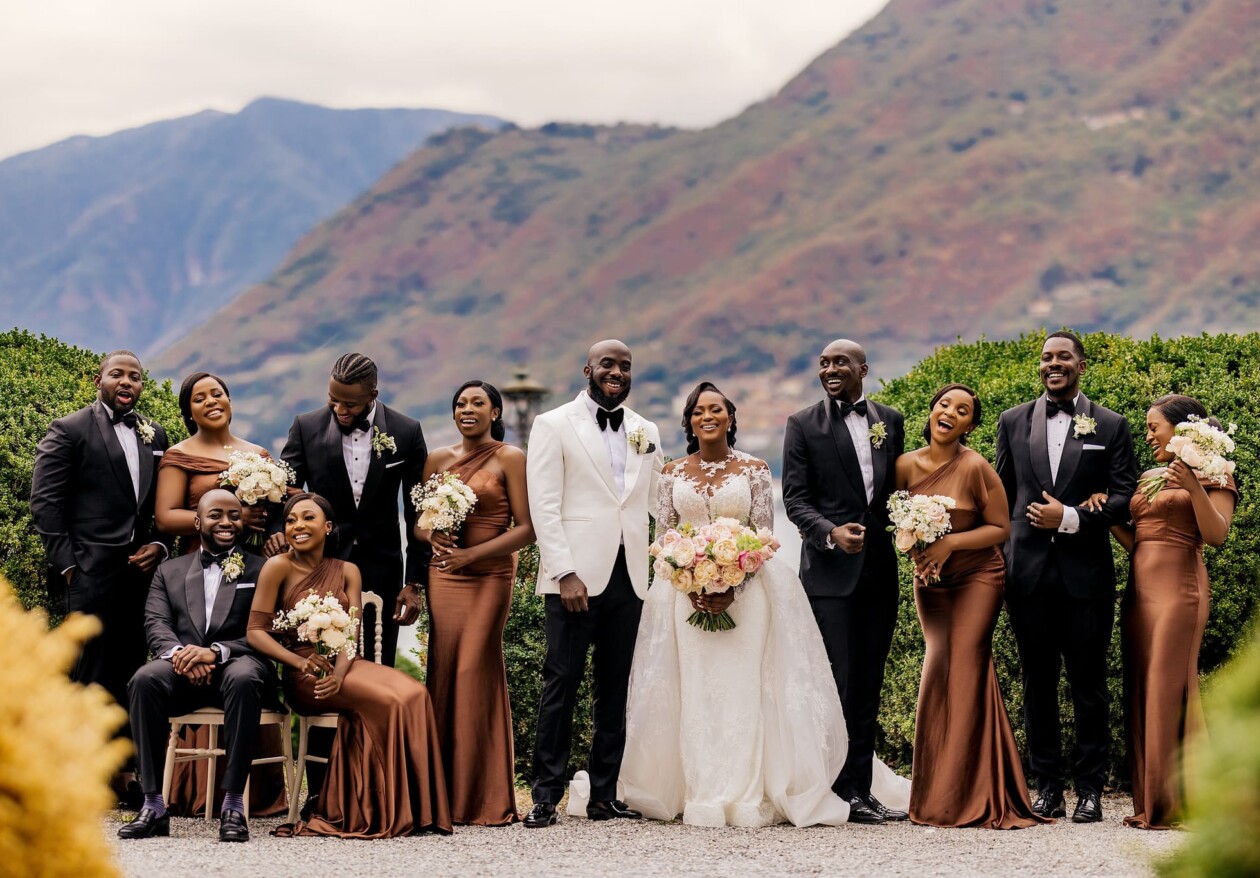 The ceremony was an unusual mix between traditional European, Nigerian and religious Christian. The bride and groom went to the altar with their mothers. The ceremony was attended by the family priest.