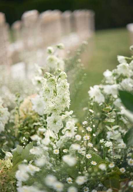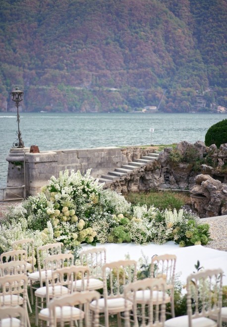 Our bride knew exactly what kind of ceremony she wanted, it was her dream: a white podium leading to the altar and armfuls of white flowers and greenery. The steam-high circular altar made for a beautiful photo backdrop, but didn’t obscure the stunning view of the lake.