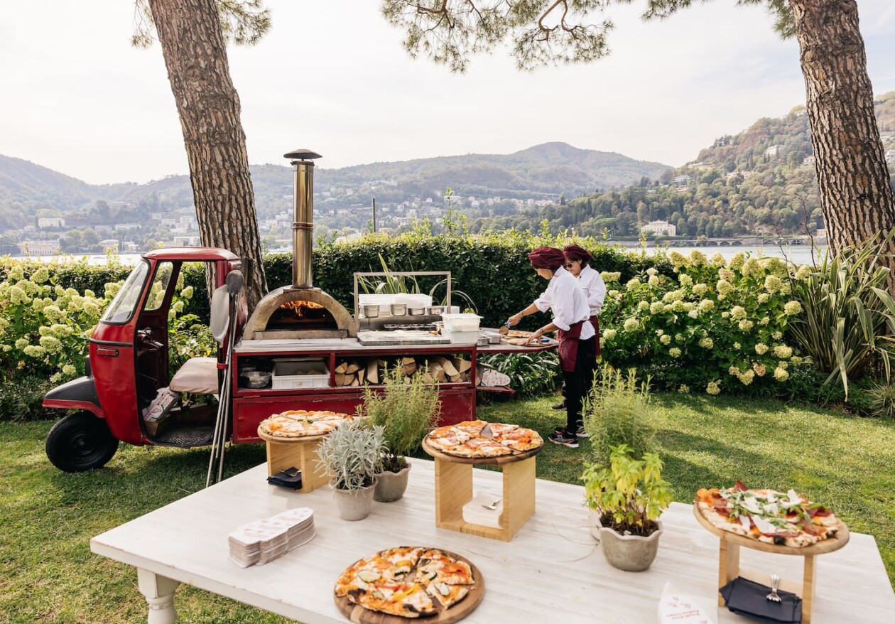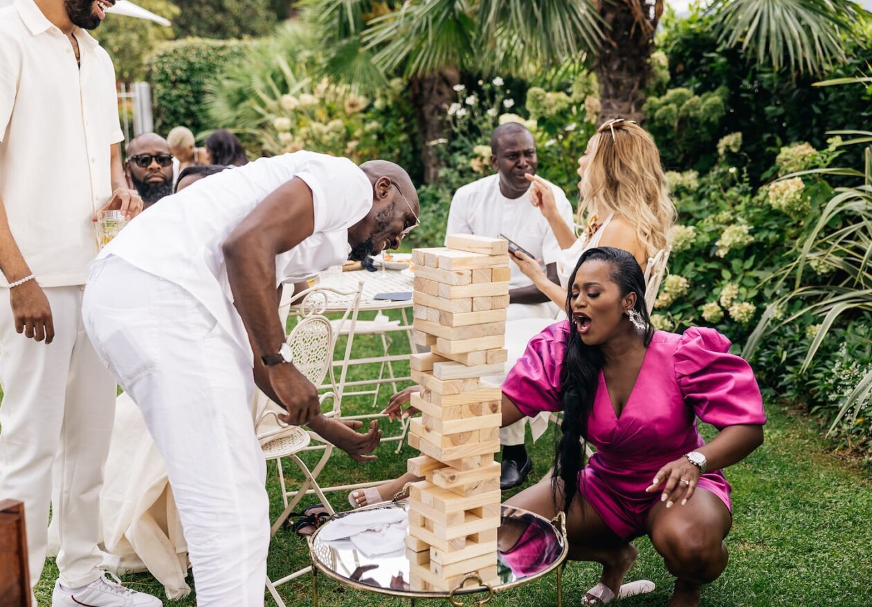 The pre-wedding lunch was held at Geno Villa with street games, African dances, pizza cooking show and gelato. All guests received wedding monogrammed canvas bags with a selection of gifts from the couple.