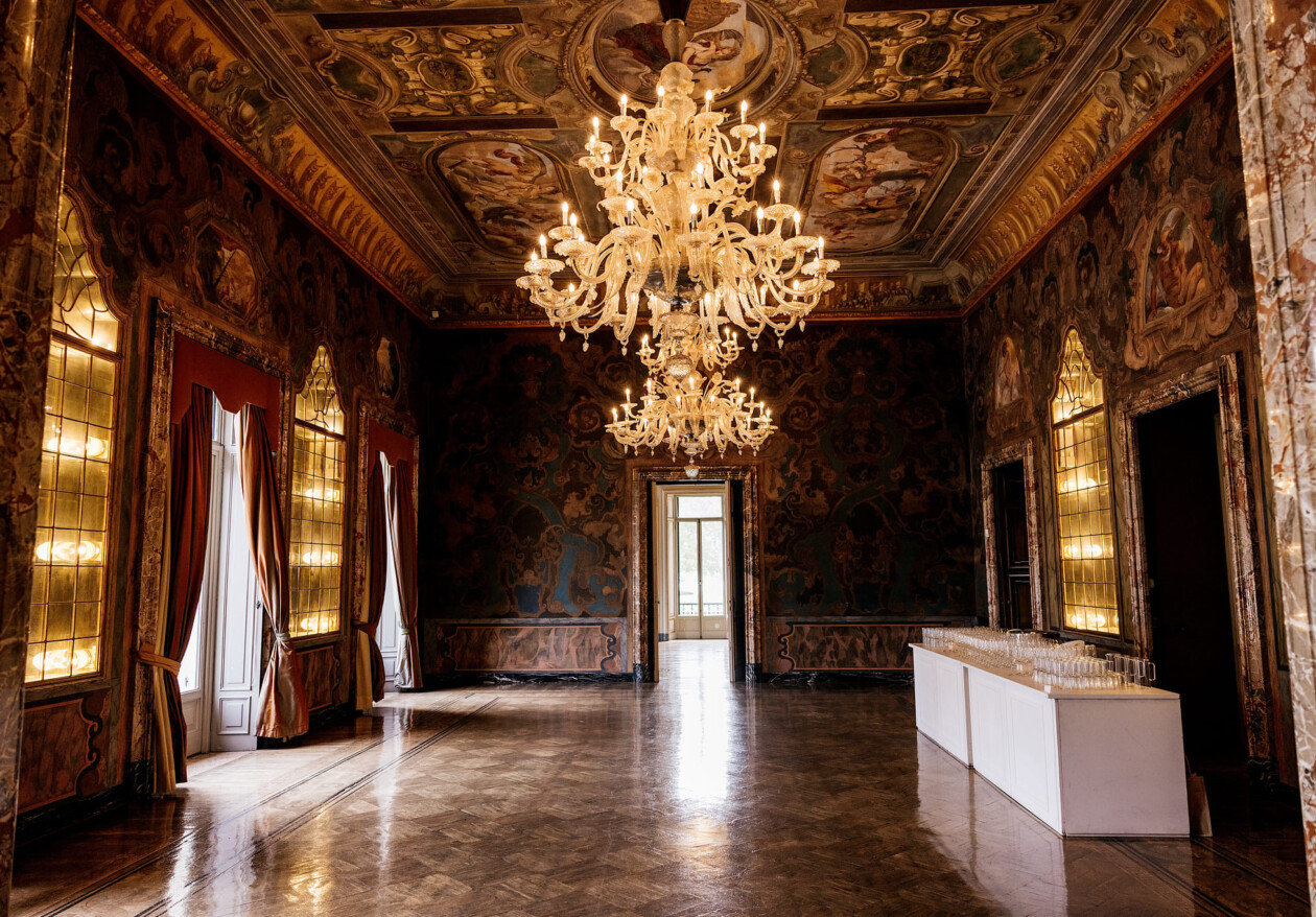 Dinner was held at the nearby exclusive Villa Gastel, which rarely opens its doors for events, as the owners live in the villa on a permanent basis. We were attracted by the real Italian patio – the courtyard of the villa, which was ideally suited for the realization of the dream described by the bride.