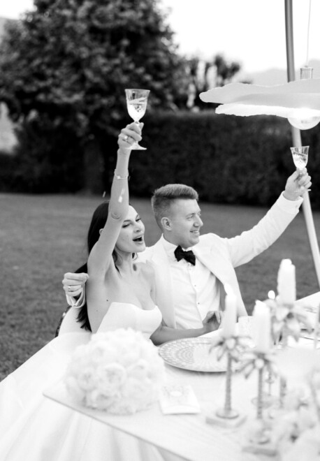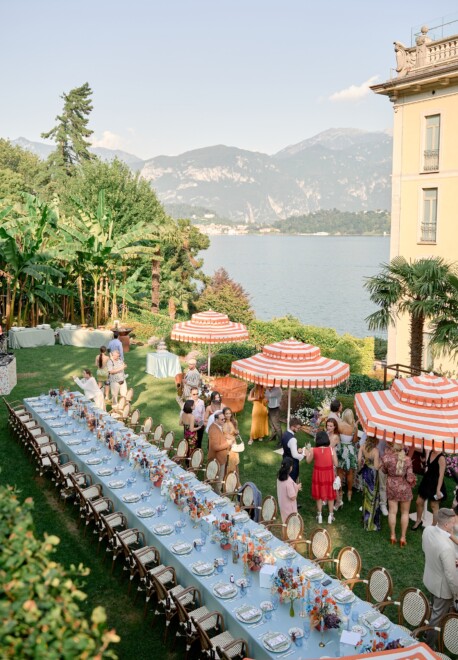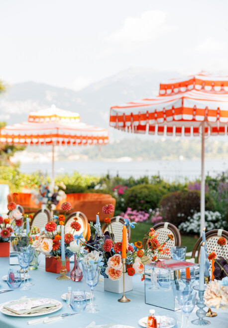 The welcome dinner at Grand Hotel Tremezzo was a vibrant ode to life, presenting a fresh take on the concept of Dolce Vita. The celebration combined the rich, warm hues of the Italian sun with the refreshing blue tones of Lake Como. The conscious contrast between the colorful decor of the welcome dinner and the pristine whiteness of the upcoming wedding further highlighted the uniqueness of each day.