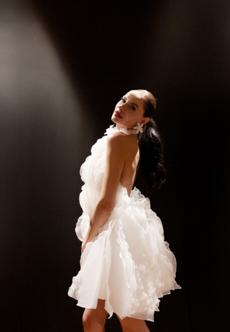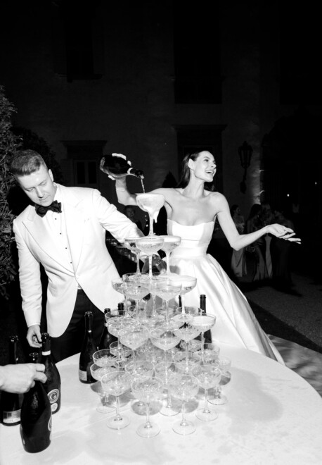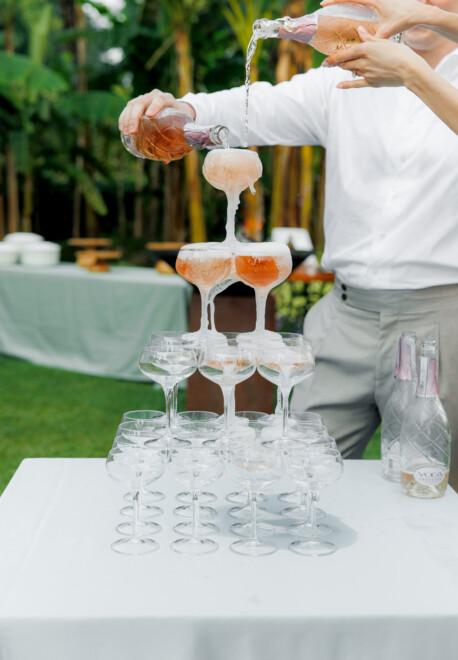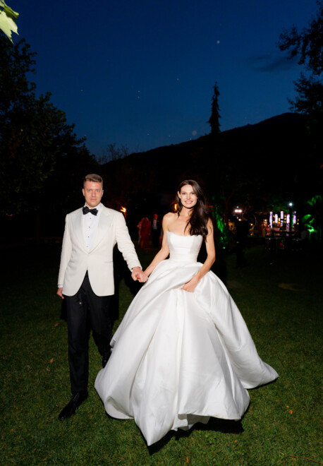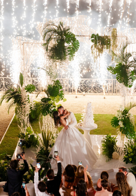 Thanks to the masterful interaction with artificial intelligence, every detail of the decor seemed custom-made from the dream world of the couple and our team. The architecture and floral arrangements combined the wild nature of the tropics with the luxury of high fashion. We sought inspiration in new directions of art from the era of METAMODERNISM. One of these, the conceptual OXYMORON, is characterized by the intentional use of contradictions to create a stylistic effect, which we aimed to achieve.
