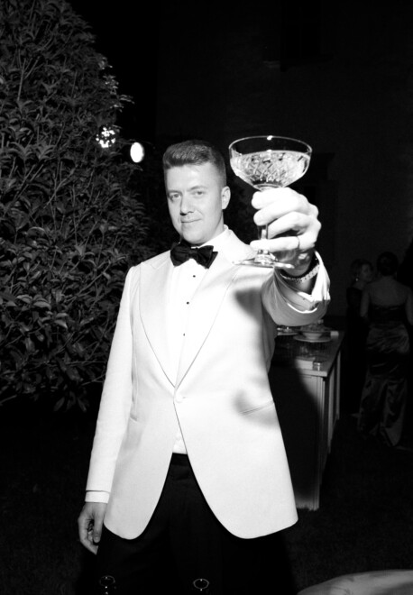 The unconventional seating plan became a true entertainment for guests during the aperitif. To find their seat, a guest would ring a bell, state their name, and receive a glass of prosecco along with an elegant card featuring their name and table number.
