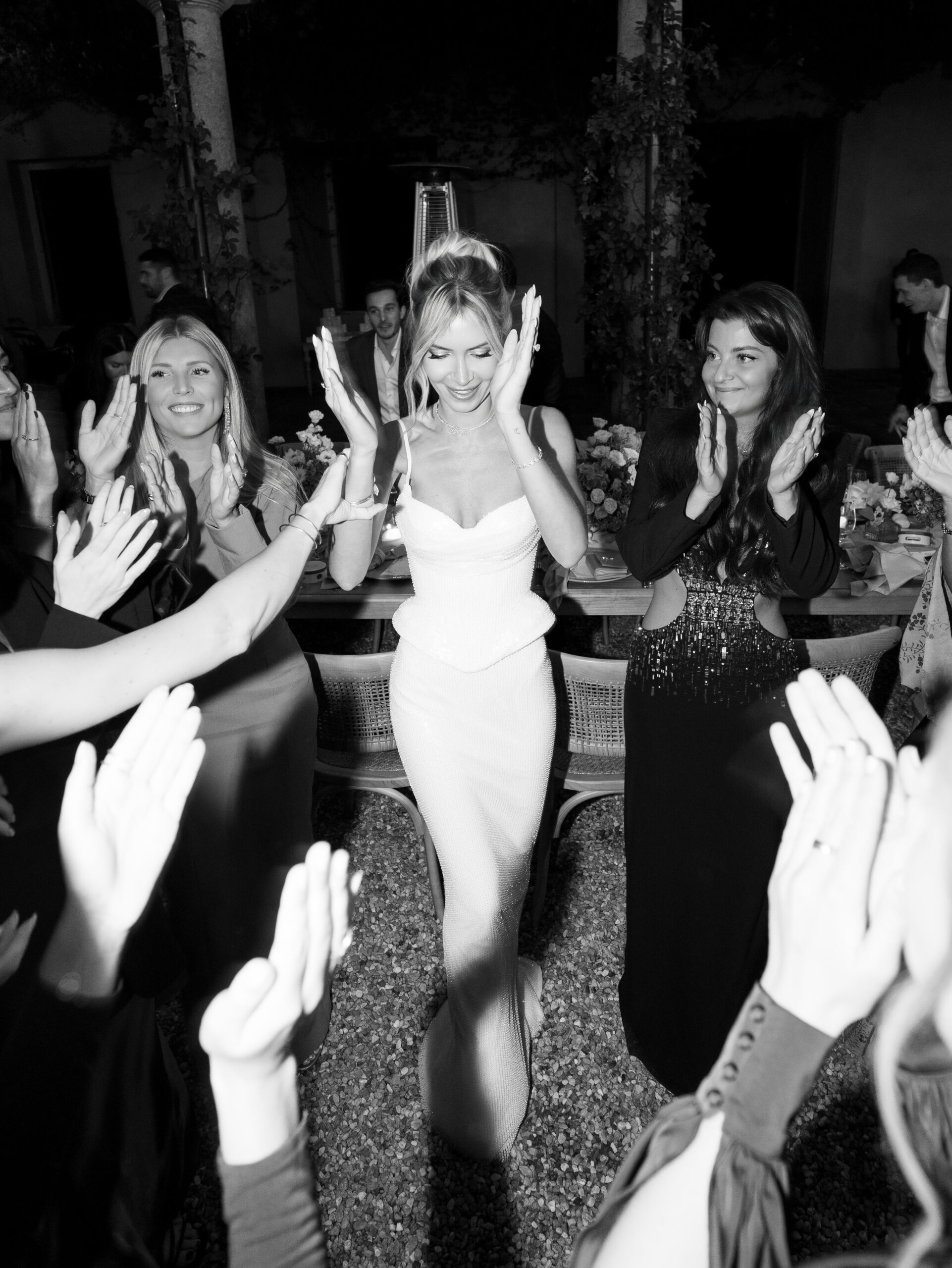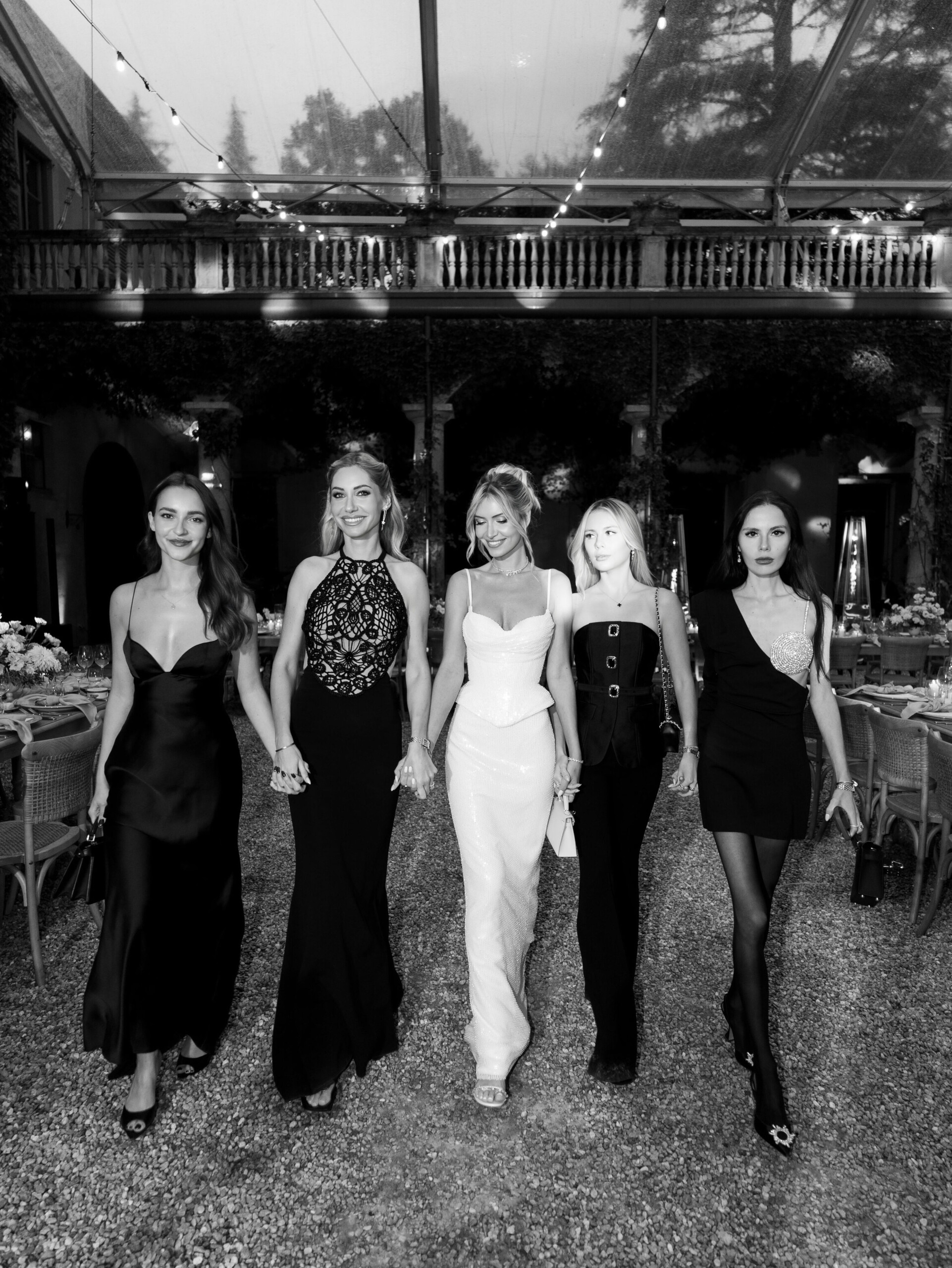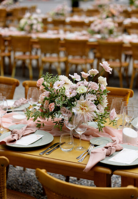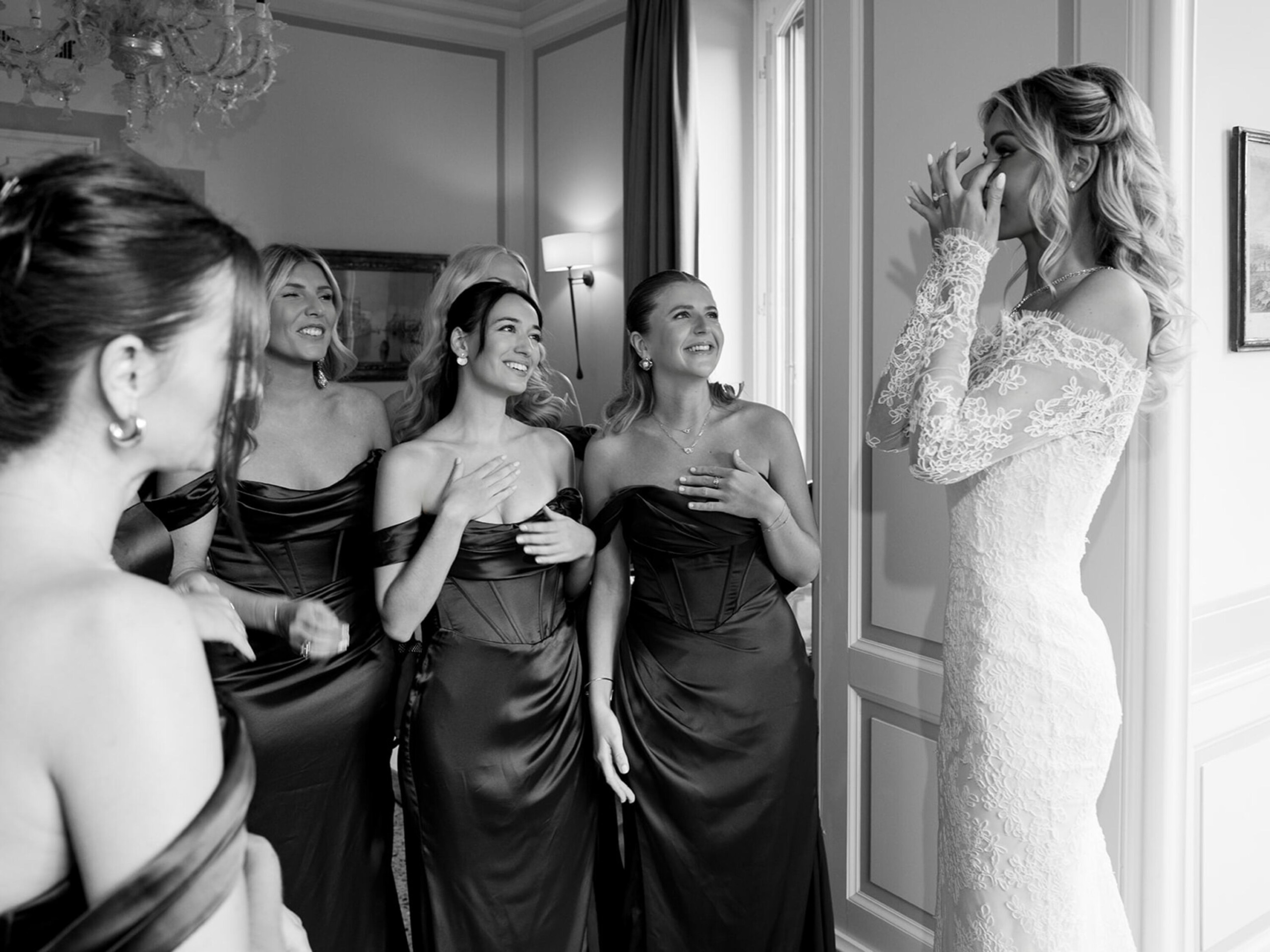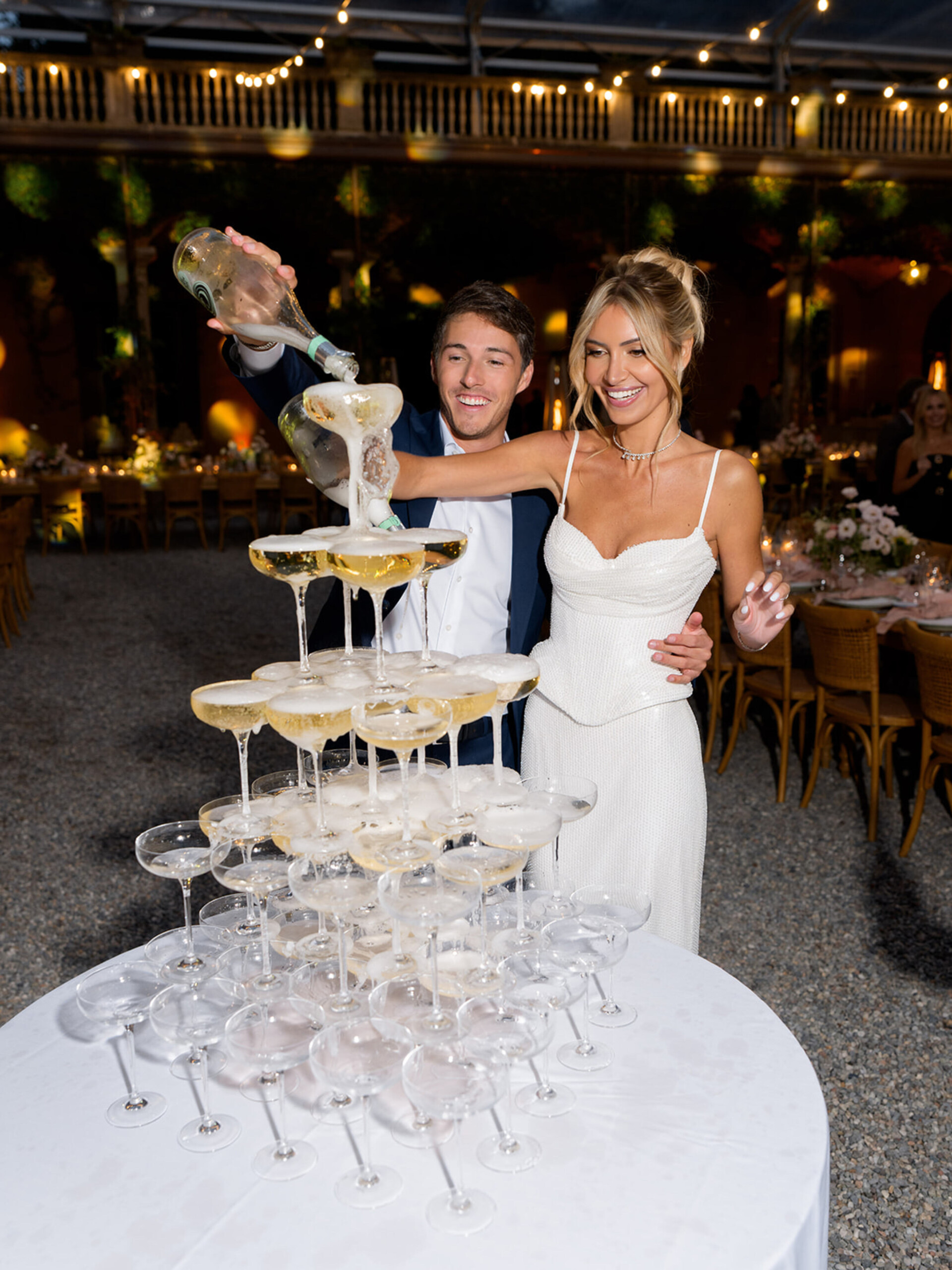 The wedding weekend opened with an elegant welcome reception styled in soft dust-pink florals and refined décor that set a graceful tone for the celebration ahead. Guests gathered around a champagne tower as live musicians played a mix of modern and classical pieces, creating an elevated yet relaxed atmosphere. With dancing, flowing champagne, and beautifully curated details, the evening felt like a sophisticated introduction to the couple’s wonderful Lake Como wedding.