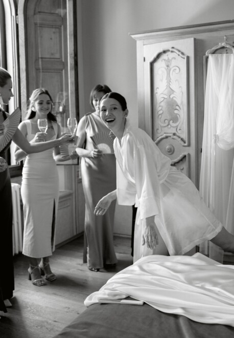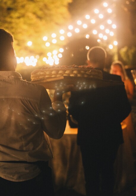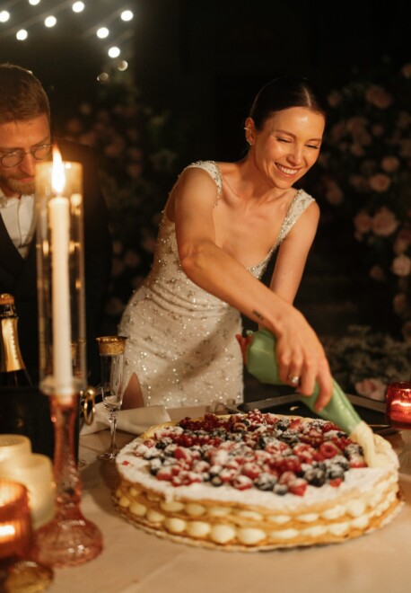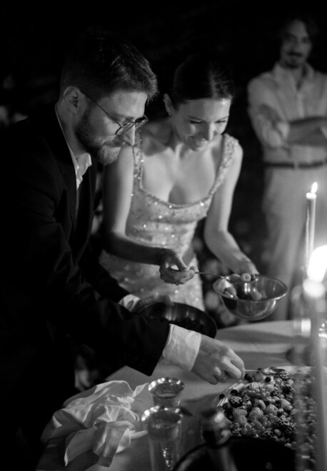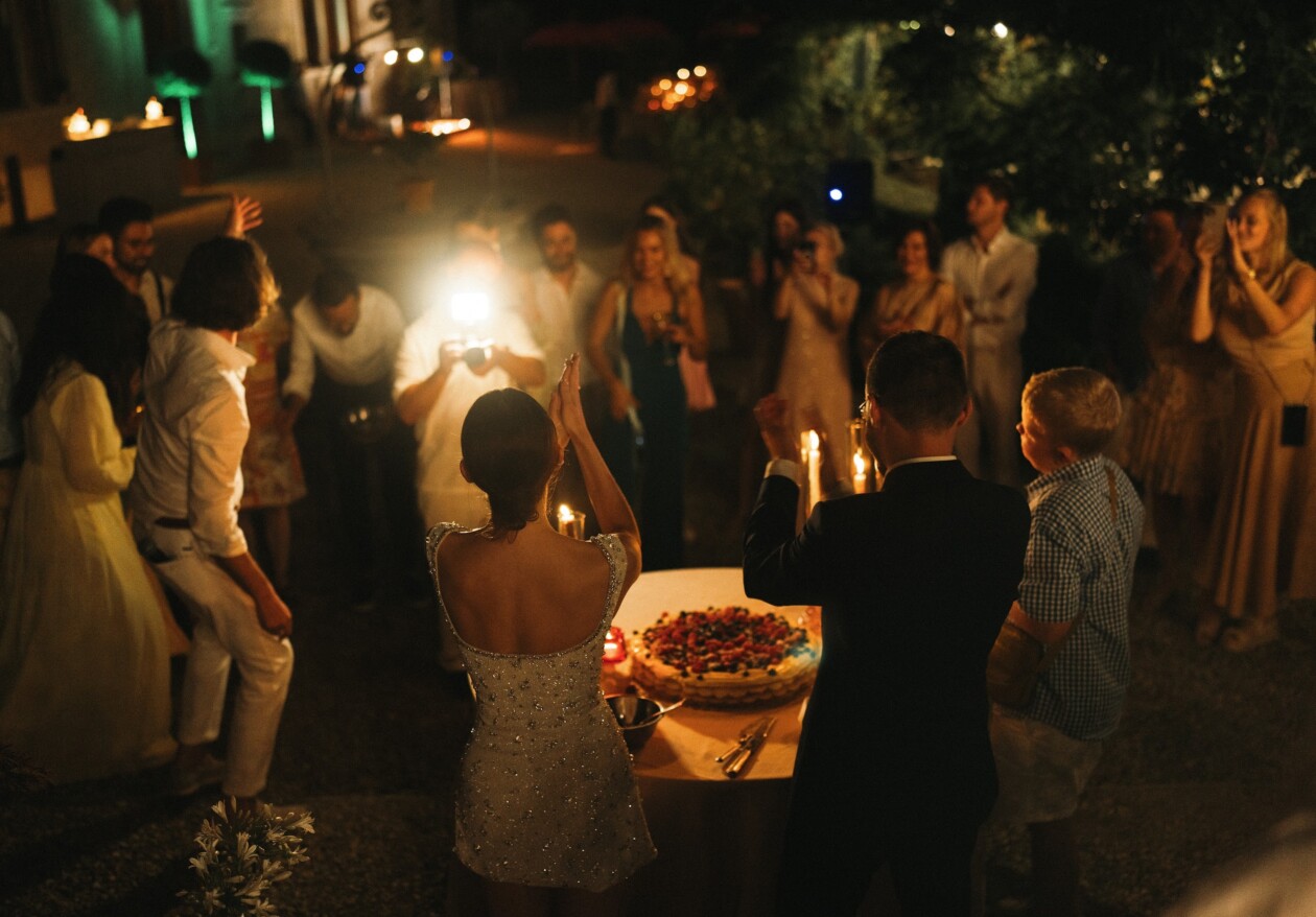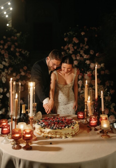 For dessert, the couple decorated their own millefoglie cake with fresh berries—laughter and sticky fingers included. But it was the spontaneous midnight pool jump that sealed the day with joy and exhilaration.