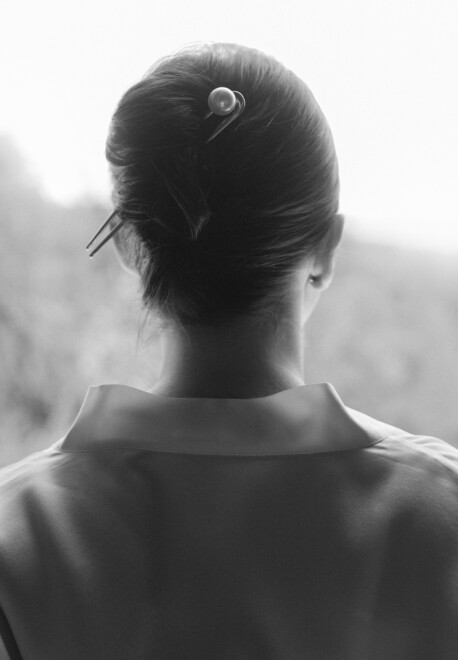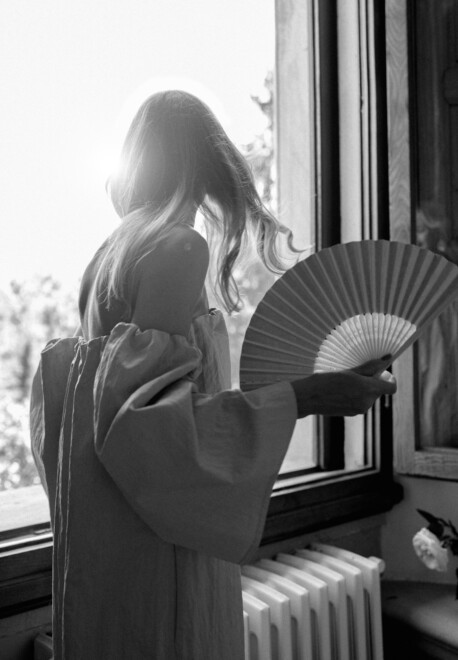 Polina spent the morning wrapped in stillness, as the villa slowly stirred to life around her. She slipped into a sculptural Vivienne Westwood gown—its silhouette sharp yet romantic—and stepped into soft ivory Jimmy Choos. Her look was thoughtful and distinctive, modern with a nod to the classic. In the gentle light, everything about her felt quietly luminous.