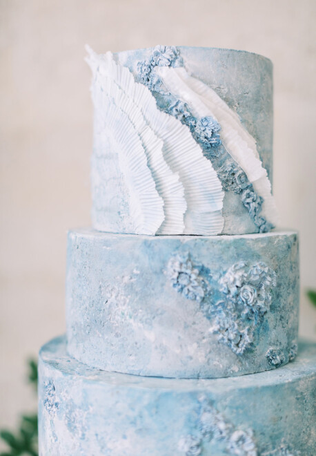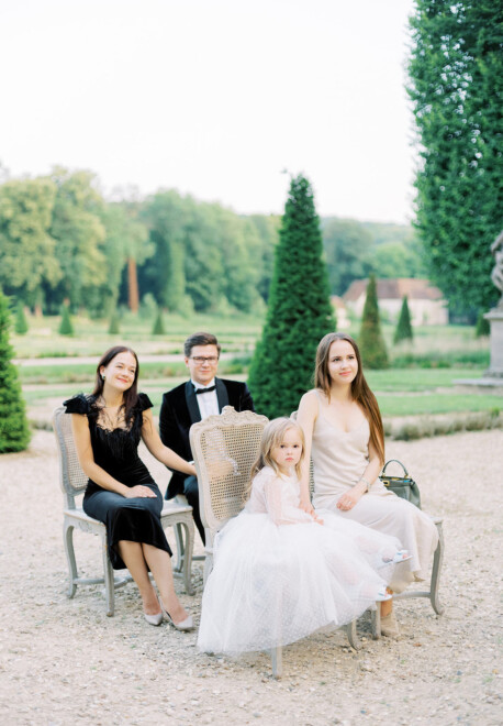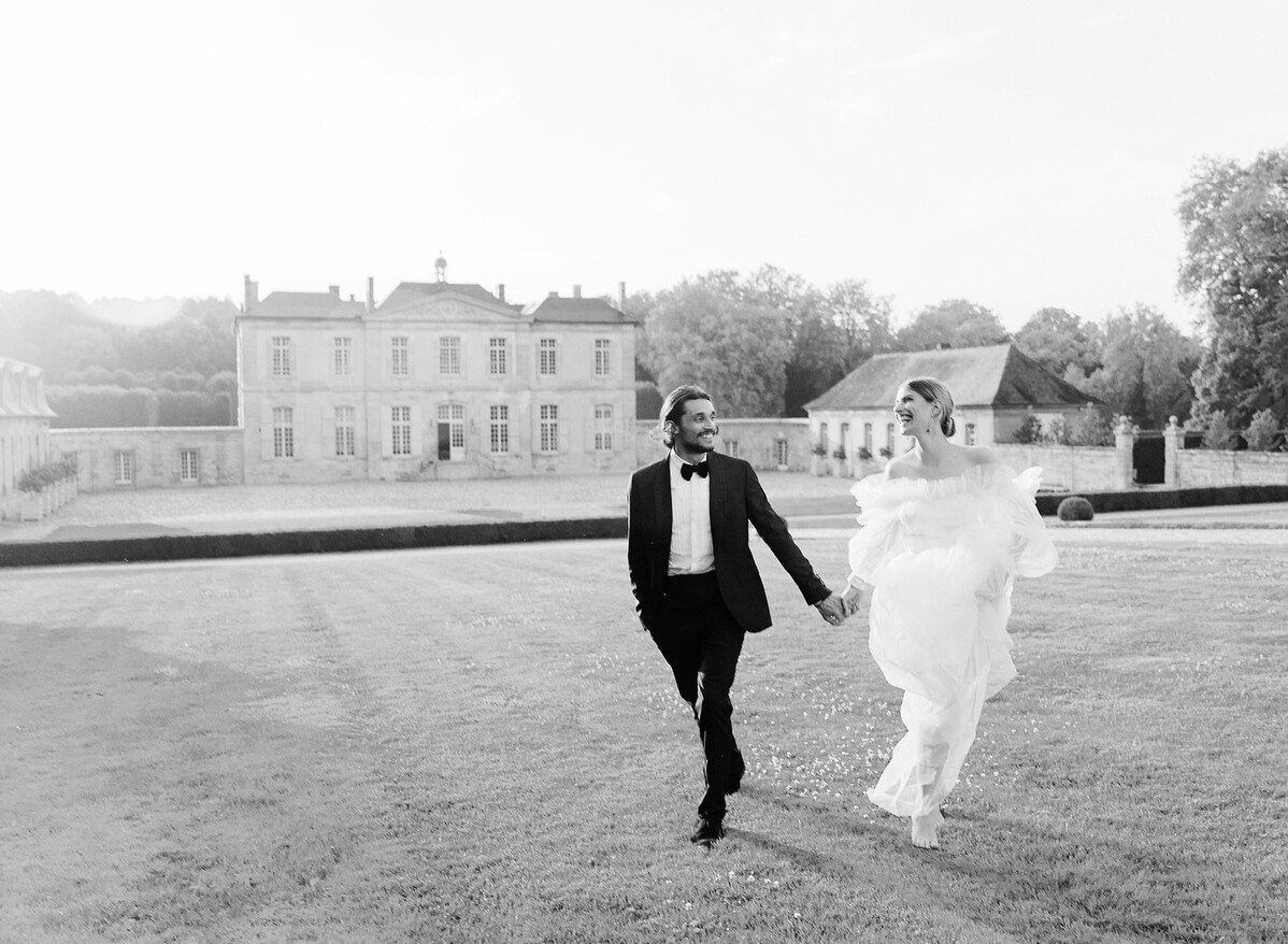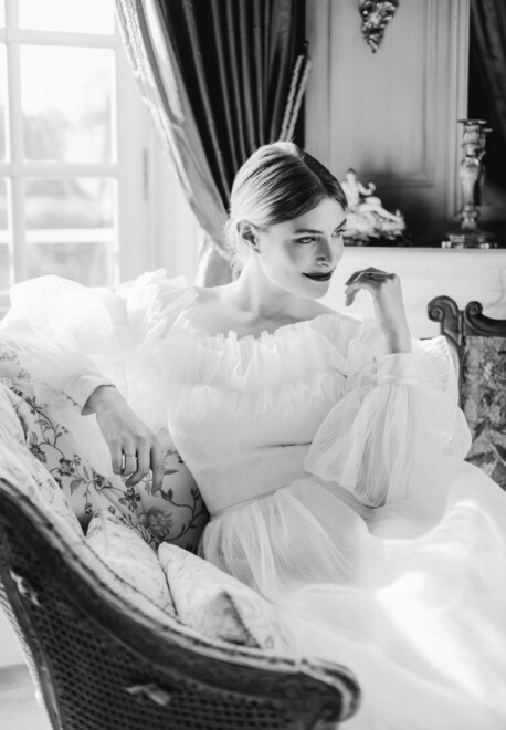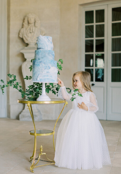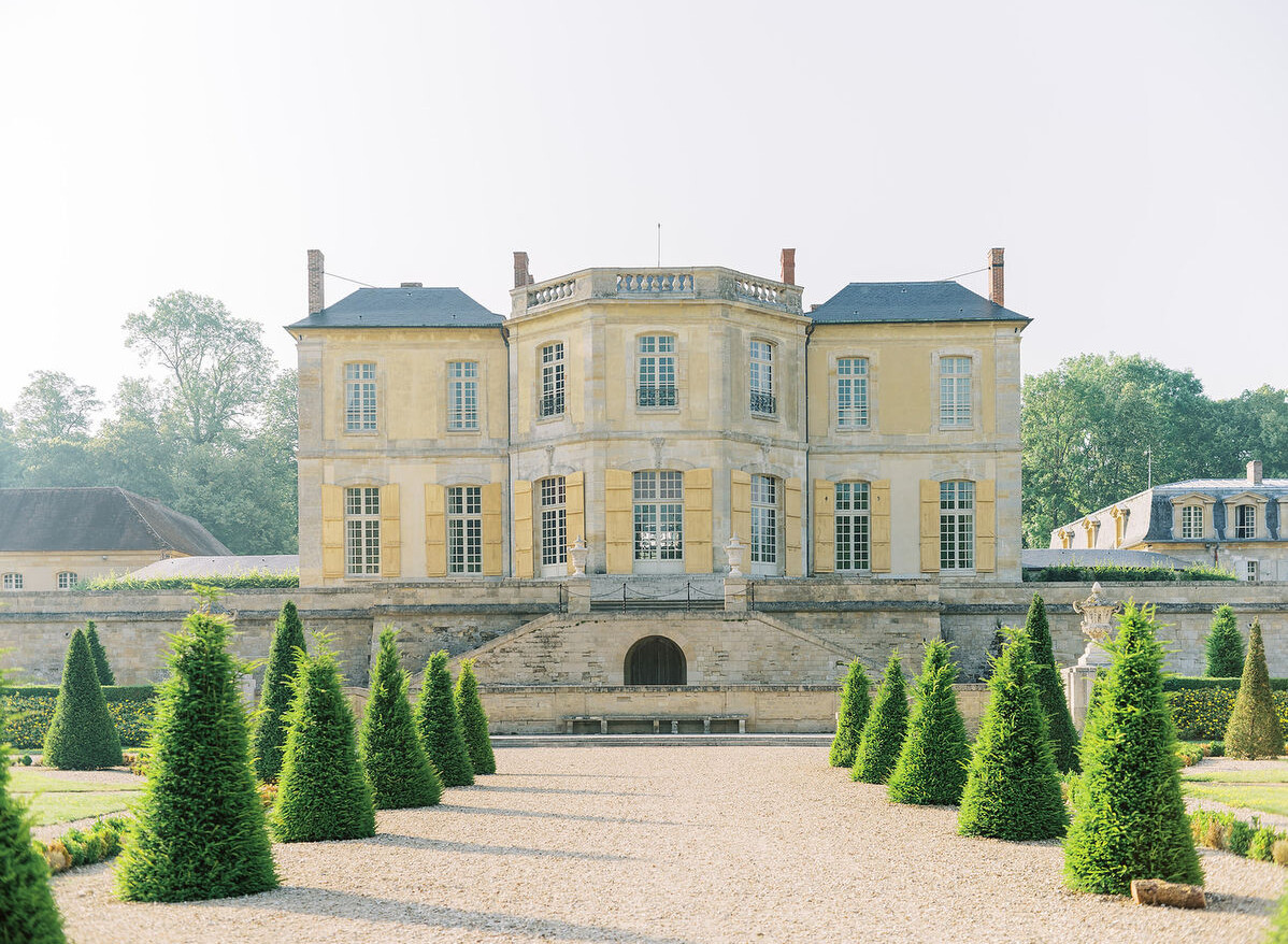 The Paris-based couple’s dream of an intimate, romantic, and aesthetic wedding came true. They invited only six guests to celebrate their love in a ceremony held at Chateau de Villette, a location featured in The Da Vinci Code. Surrounded by flowers, they exchanged vows in the gardens, enjoyed a powder blue cake, and had a dinner in a beautifully decorated ballroom. For Mègane and Bernardo, it was a real and special moment, unlike any film they had worked on.